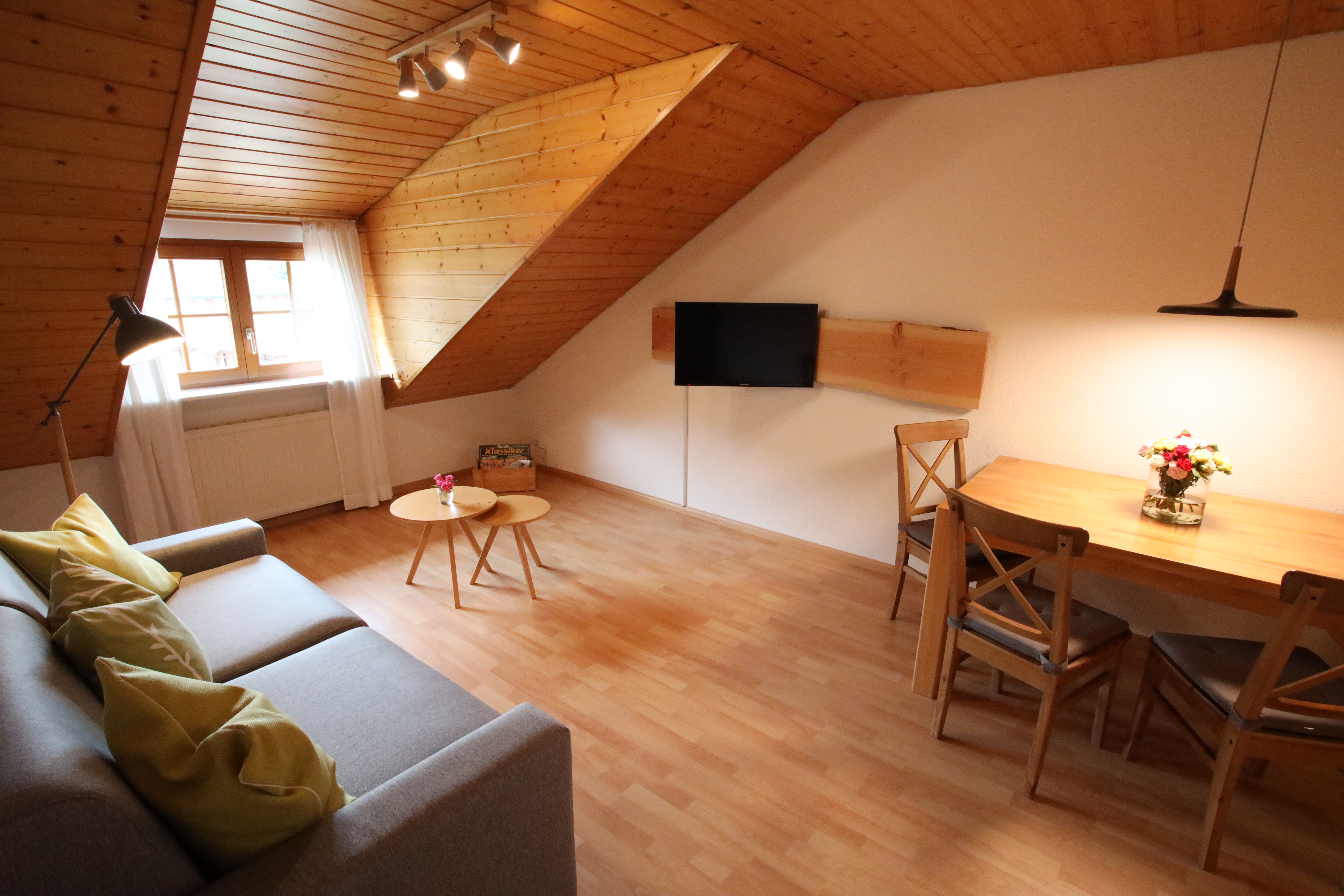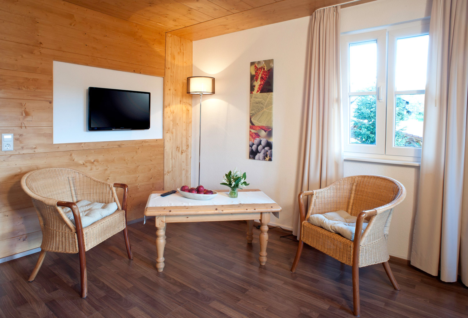 Rund um den Hof laden verschiedene Sitzplätze zum Verweilen ein – im Heimatstüble, auf der Sonnenterrasse oder am Spielplatz.